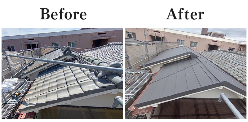 古い釉薬瓦屋根から、スーパーガルテクトへ葺き替えました!